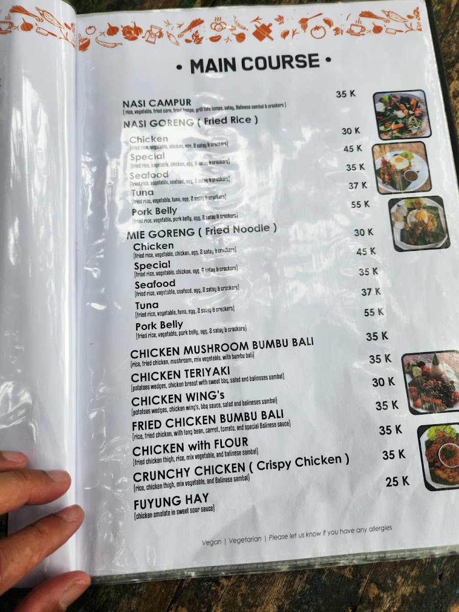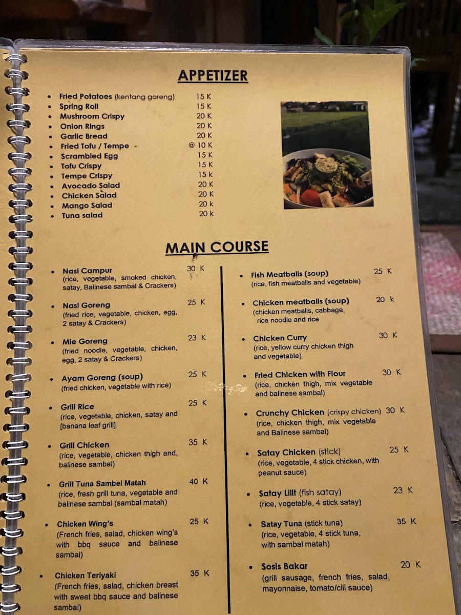 “ Came here for 2nd round of dinner in mid of march 2025. A hidden gem, found this place in Google maps. Along the way to the restaurant, was dark due to less lamp posts on the road side. Still walking distance from Ubud main street, enjoy the darkness before reaching the restaurant. A rice field view restaurant, but inside is full of crowd, mainly Western tourists having dinner. Nice ambience, nice lighting and decoration. We ordered chicken mie goreng, on season juice and slow juice double, did not order 2 portion due to this is 2nd round of dinner after having burgers. Food taste good, very reasonable price, wish can taste other food too. May be next time! Recommended restaurant and beautiful view. ”